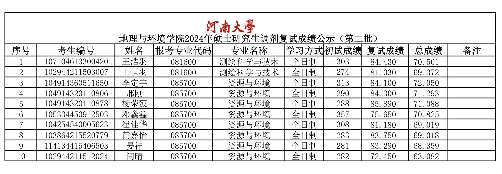 yl23411永利集团官网地理与环境学院2024年硕士研究生第二轮调剂复试成绩公示