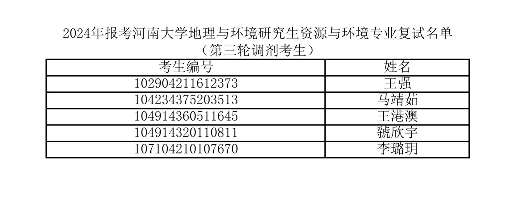2024年yl23411永利集团官网地理与环境学院研究生资源与环境专业复试名单(第三轮调剂考生)