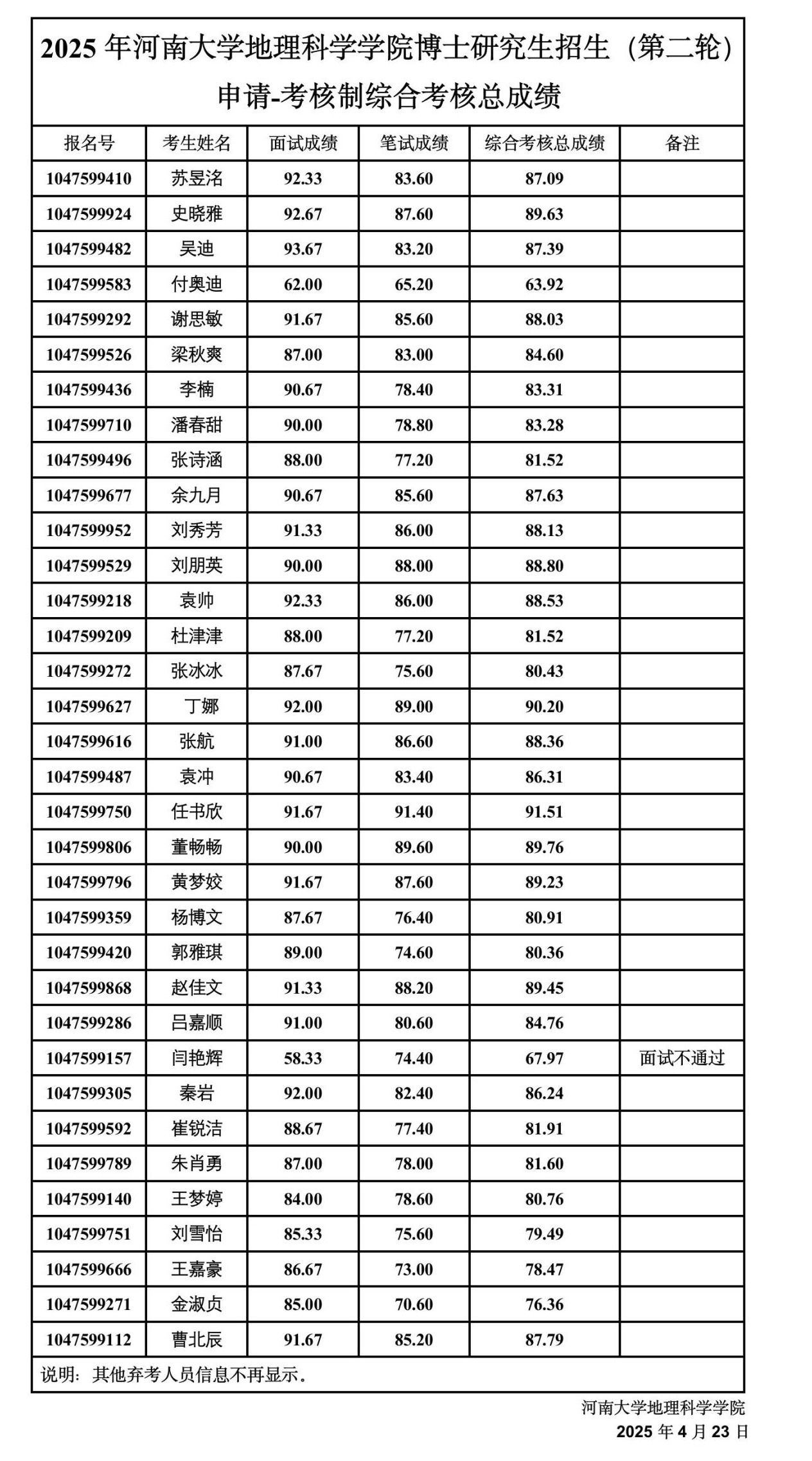​2025年yl23411永利集团官网-博士研究生招生考试申请考核制(第二轮)综合考核总成绩