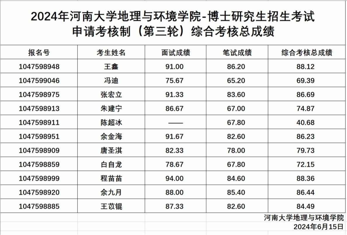 2024年yl23411永利集团官网地理与环境学院—博士研究生招生考试申请考核制(第三轮)综合考核总成绩