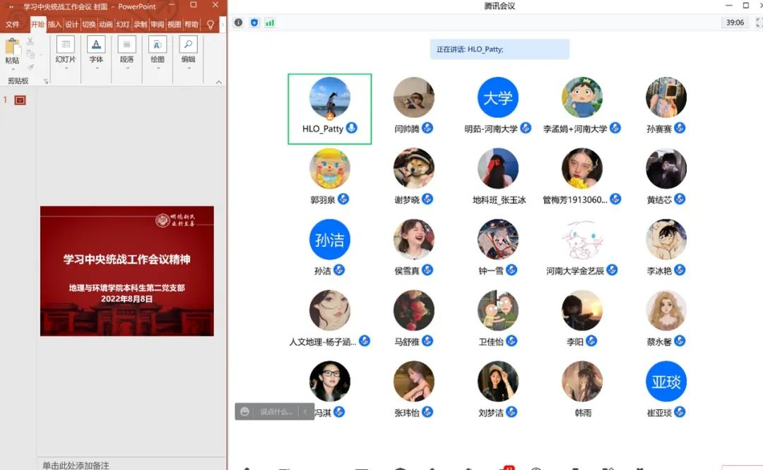2022年8月5日,本科生第三党支部线上学习习近平总书记中央统战工作会议重要讲话精神。支部书记程亚楠、组织委员屈利铭和19位预备党员参与此次会议,会议由支部书记程亚楠主持。支部成员提前搜集相关材料进行学习并在会议上分享自己的学习内容和心得,如张佳燚同志分享了新时代爱国统一战线的基本任务,张筱昀同志分享统一战线是党的总路线/政策的重要组成部分,郑卓同志分享百年统战的历史性贡献和新时代统战工作取得的重大成就等。最后,程亚楠同志再次叮嘱大家全面学习会议内容及精神。同志们表示会继续学习新时代统一战线工作的重要思想,牢牢把握新时代爱国统一战线的历史方位和重要使命,坚持爱国统一战线发展的正确方向。